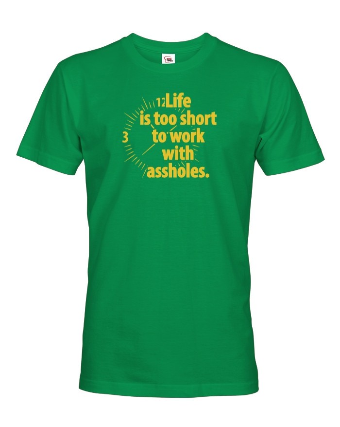 Pánské tričko s vtipným potiskem „Life is too short to work with assholes“ připomene každému jaké to je těžké pracovat s negativy lidmi, kterých můžeme mít na pracovišti. Tričko, které se hodí pro každodenní nošení. Tričko může také působit jako odpuzovač negativních lidí.