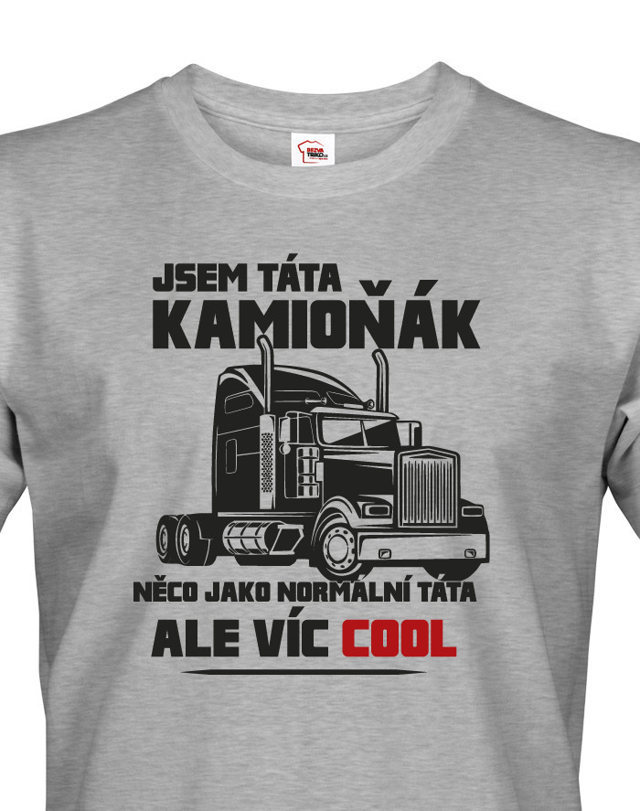 Další tričko pro řidiče kamionů, pro řidiče kamionů tatínky. Tričko s potiskem Jsem táta kamioňák, něco jako normální táta, ale víc COOL! Triko udělá radost k narozeninám nebo Vánocům nejednomu opravdu COOL řidiči kamionu!