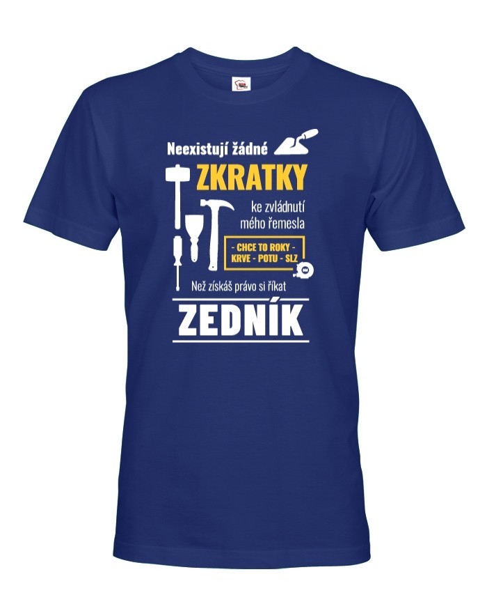 Hledáte originální a vtipné tričko pro zedníky? Pokud ano, právě jste ho našli. Tričko s vtipným potiskem „Neexistují žádné zkratky k zvládnutí mého řemesla – chce to roky-krve – potu – slz. Než si získáš právo si říkat zedník.“ Zedník je dnes poměrně vzácné řemeslo.