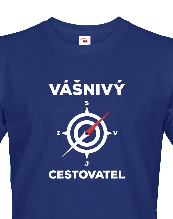 Cestovatelské tričko s kompasem na hrudi a nápisem Vášnivý cestovatel. Triko je určeno pro všechny trampy, dobrodruhy, výletníky a samozřejmě vášnivé cestovatele. :) Vyraz na příští expedici s tričkem, které všem dokonale ukáže, kam vás srdce táhne.