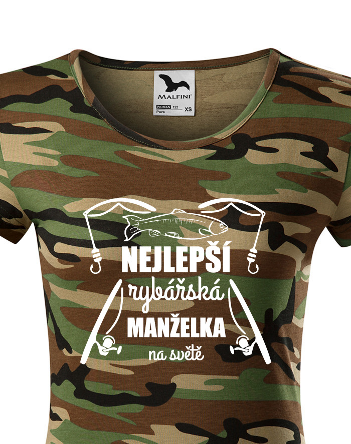 Tohle triko je určeno jen a jen pro tu nejlepší rybářskou manželku na světě! Zaručeně udělá radost nejen k Vánocům, ale také k narozeninám. Zajistit „povolenku“ na víkendové rybaření asi nedokáže, ale má k tomu sakramentsky nakročeno. Udělejte doma velkou parádu s tímhle dámským rybářským trikem s potiskem!