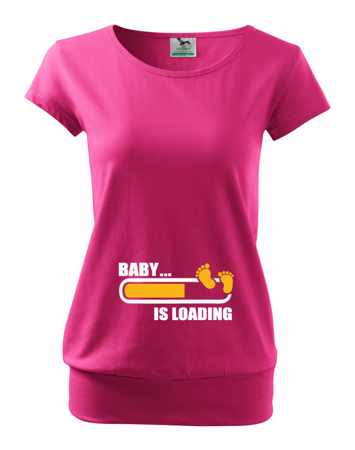 Další tričko z naší vtipné těhotenské kolekce. Těhotenské tričko Baby…is loading (Děťátko se nahrává) nesmí zkrátka chybět v žádné skříni nastávající maminky. Triko můžete koupit v několika atraktivních barvách. Na tričko vám také rádi dotiskneme jméno dětátka nebo měsíc narození.