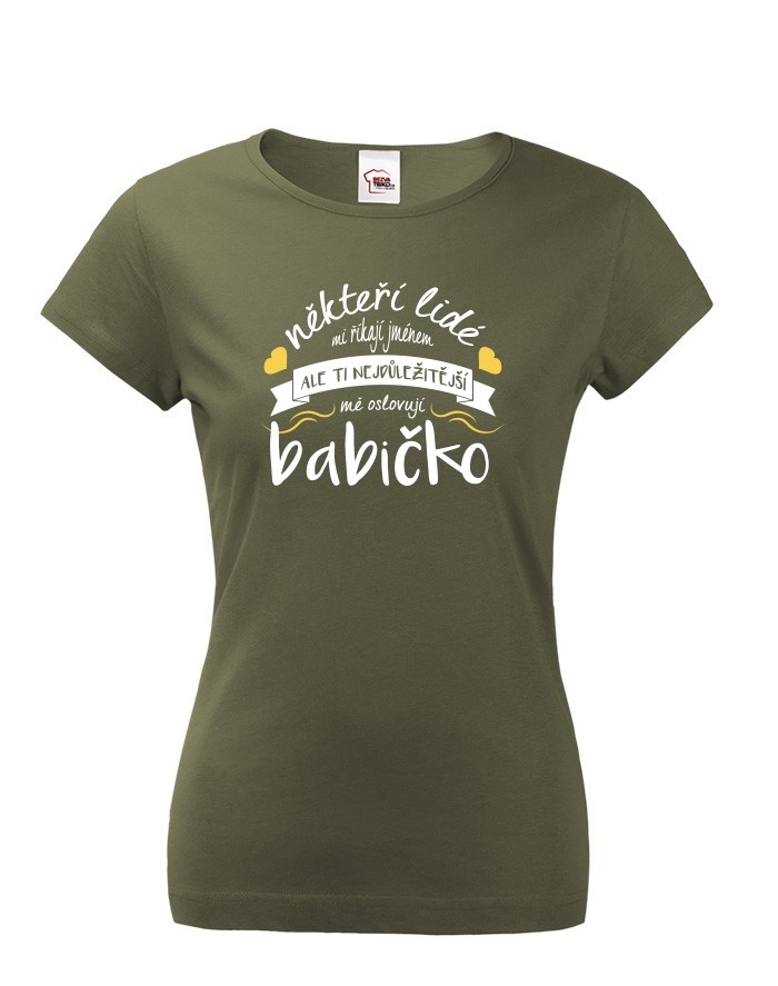 Triko s potiskem „Někteří lidé mi říkají jménem, ale ti nejdůležitější mě oslovují babičko“ bude dokonalý dárek pro každou suprovou babičku, které je důvod dělat radost každý den. Ať už jí potěšíte tímto trikem k narozeninám, Vánocům nebo prostě jen tak. Triko bude skvělým připomenutím, že ta nej babička je opravdu jen jedna. ;-)