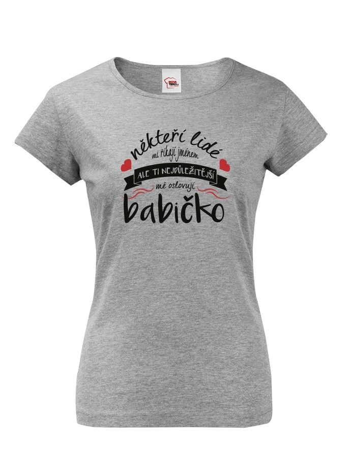 Triko s potiskem „Někteří lidé mi říkají jménem, ale ti nejdůležitější mě oslovují babičko“ bude dokonalý dárek pro každou suprovou babičku, které je důvod dělat radost každý den. Ať už jí potěšíte tímto trikem k narozeninám, Vánocům nebo prostě jen tak. Triko bude skvělým připomenutím, že ta nej babička je opravdu jen jedna. ;-)