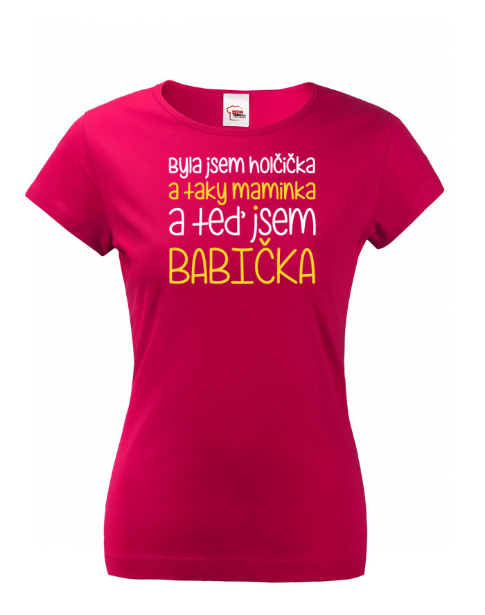 „Byla jsem holčička a taky maminka a teď jsem babička“ bude skvělým motivem na triko pro každou babičku. Triko udělá radost babičce jako dárek k narozeninám nebo vánocům.