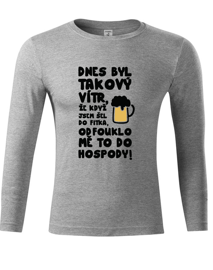 Další skvělý motiv s pivní tématikou vhodný pro každou cestu do fitka, a vlastně taky do hospody. Prostě velký vítr se těžko překonává a tak nejen cesta do fitka může skončit odfouknutím do hospůdky. Vtipné tričko s potiskem nezklame a pobaví celé okolí.