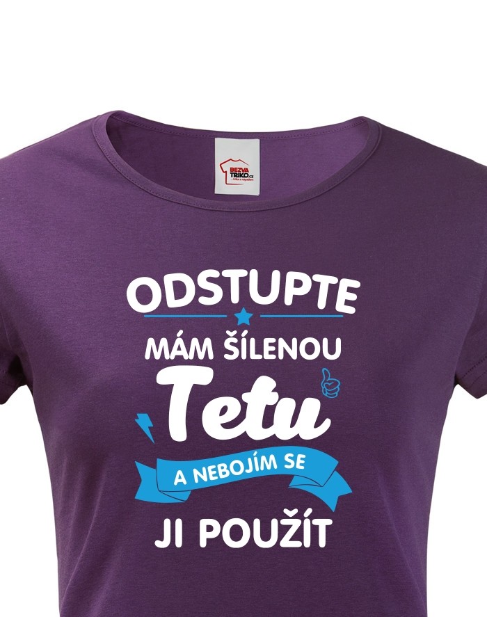Tričko s potiskem pro tetu - Odstupte mám šílenou tetu a nebojím se ji použít.