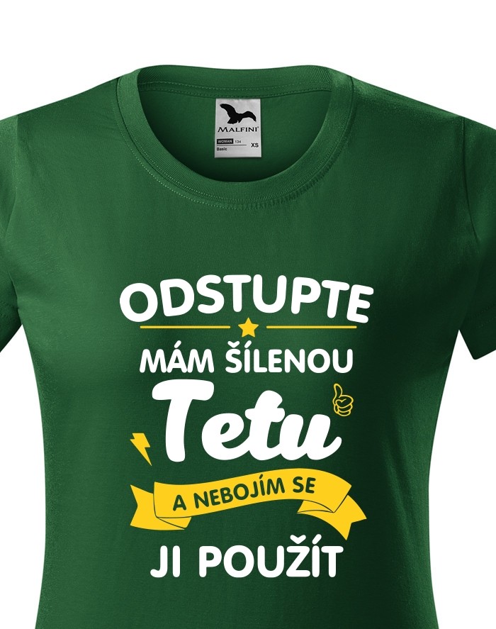 Tričko s potiskem pro tetu - Odstupte mám šílenou tetu a nebojím se ji použít.