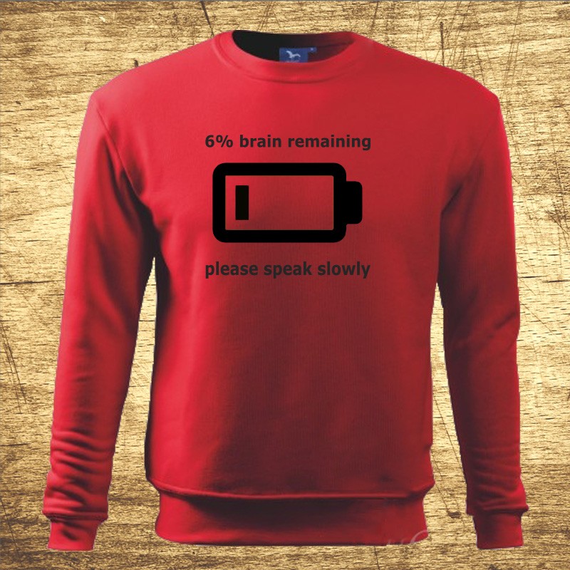 Mikina bez kapucne s motívom Speak slowly. Ak ti to dnes pomalšie zapína, obleč si túto mikinu a rozdiel spoznáš ihneď.