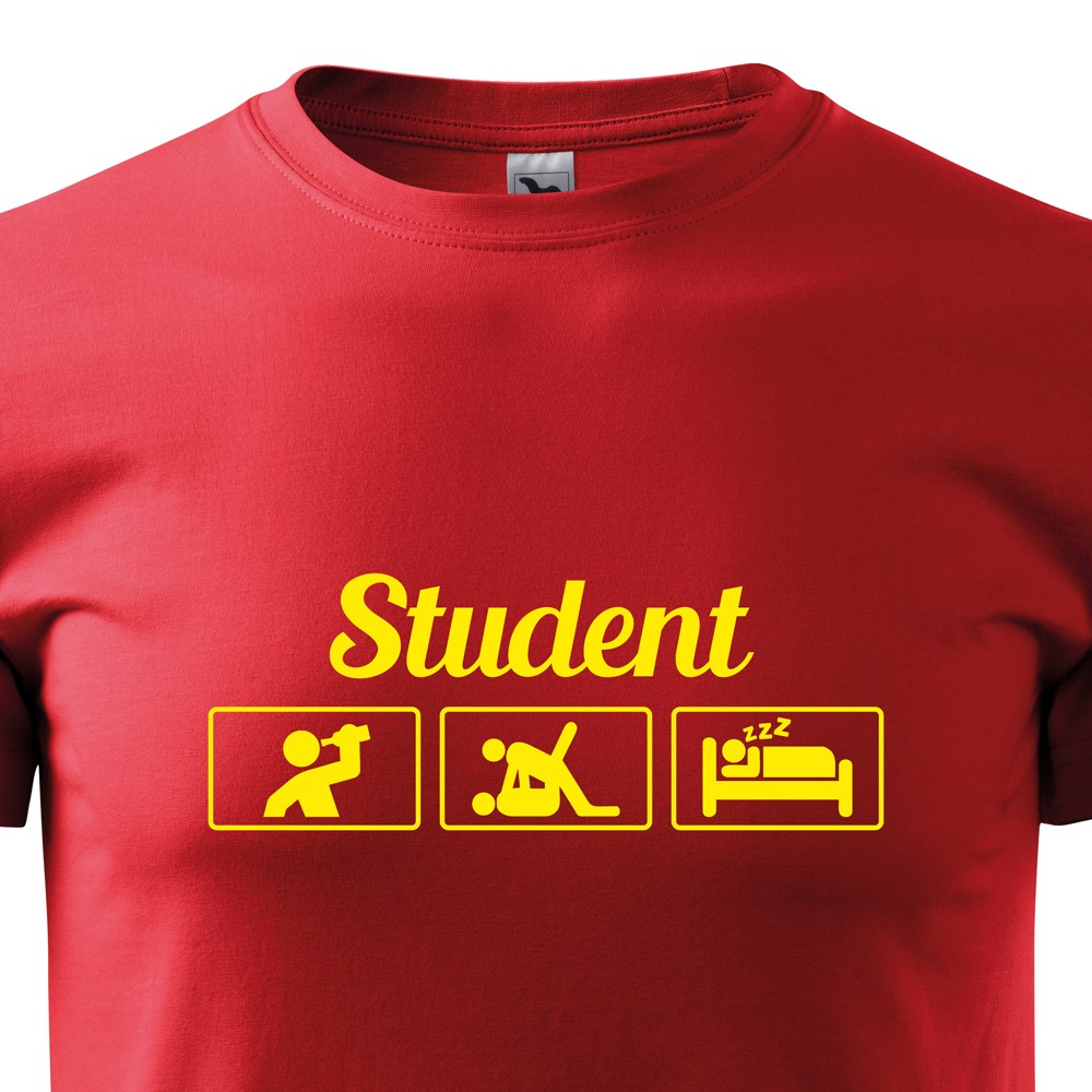 Jo ty sladká studentská léta… Život studenta je prostě skvělý. Pro všechny, kteří denně „těžce“ studují a nemají ani chvíli oddechu je určeno naše vtipné triko s potiskem. Tričko pro studenty s potiskem pití, sex a spánek bude skvělé na běžné nošení, nebo víkendovou párty!