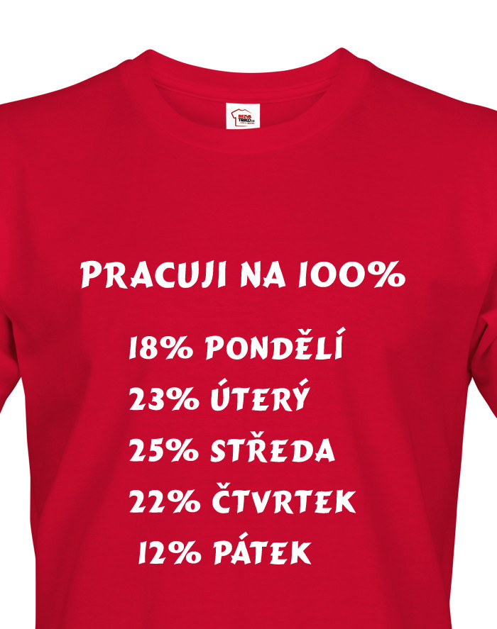 Vtipné triko s potiskem Práce na 100% - ideální dárek pro pracanty