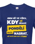 Jo někdy to takhle prostě má každý. Jsou dobré pondělky a jsou špatné pondělky. Nebo možná špatné a horší. Každopádně s přibývajícím věkem nás již nemůžou rozhodit. Nebo? Tohle tričko s vtipným nápisem rozhodně pobaví a neurazí.