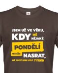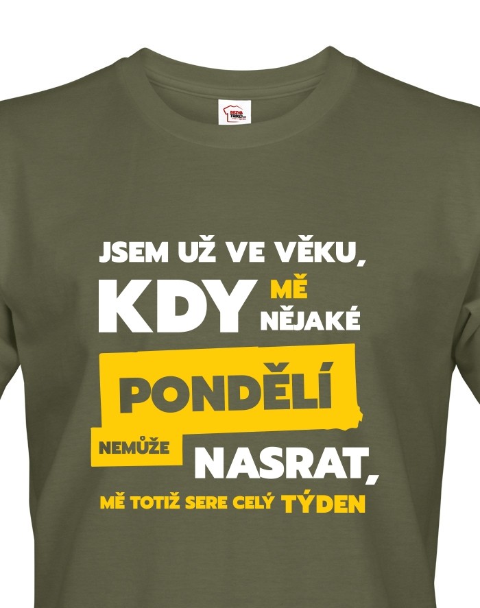 Jo někdy to takhle prostě má každý. Jsou dobré pondělky a jsou špatné pondělky. Nebo možná špatné a horší. Každopádně s přibývajícím věkem nás již nemůžou rozhodit. Nebo? Tohle tričko s vtipným nápisem rozhodně pobaví a neurazí.